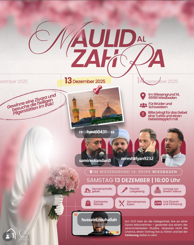 Am kommenden Samstag, den 13. Dezember, soll ein schiitisch-islamistisches Event in städtischen Räumen in Wiesbaden stattfinden. Beworben wird die Veranstaltung von der islamischen Jugendgruppe »Salehin« (sale7in), der Seite »Reisegruppe Esraa« und dem schiitisch-islamistischen Influencer Hani Karimian.